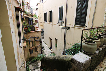 Terracina Centro Storico, a pochi passi da Piazza municipio, in uno degli angoli più belli e caratteristici, Appartamento mq. 45: salone con angolo cottura e due ingressi, di cui uno indipendente dalle mura di cinta storiche del vecchio paese; bagno con finestra, ampia camera matrimoniale con 2 finestre (possibilità di ricavare cameretta); arredato in parte con mobili d'antiquariato.